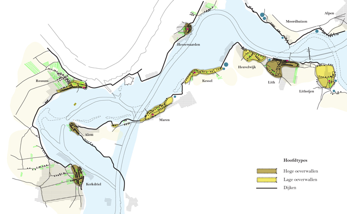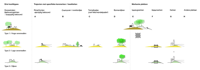 Pleidooi om de waterkering van de Bedijkte Maas, niet als één doorgaande dijk te beschouwen, maar als een afwisseling van verschillende dijktypen, met een eigen karakter, specifieke kenmerken en kwaliteiten en markante plekken