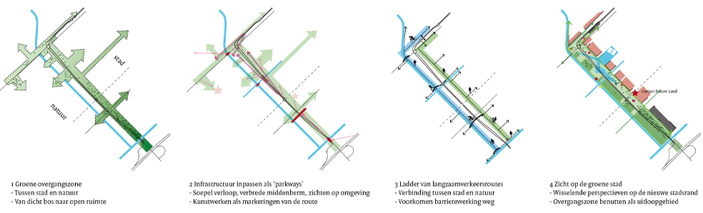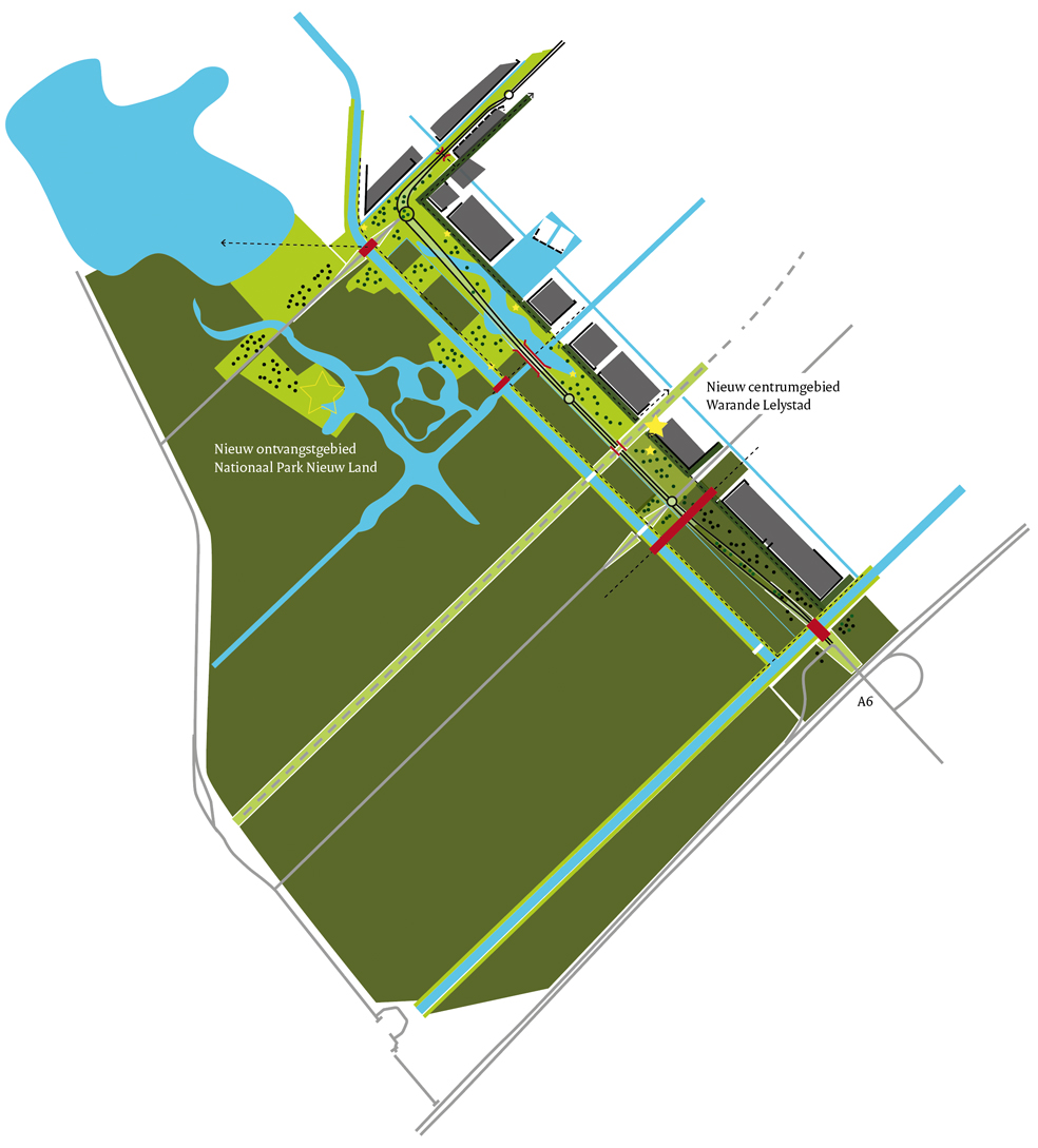 De inpassing van deze twee nieuwe wegen is een kans om Lelystad een eigentijds gezicht aan de natuur te geven, een groene entree – als ‘visitors journey’ – naar het Nationaal Park te ontwikkelen én nieuwe verbindingen tussen stad en natuur te realiseren.