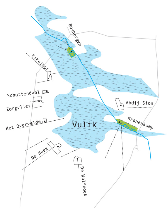 Landgoed De Kranenkamp is één van de landgoederen rond het lager gelegen – voormalige – moerasgebied. Water speelt in het landgoed een grote rol.