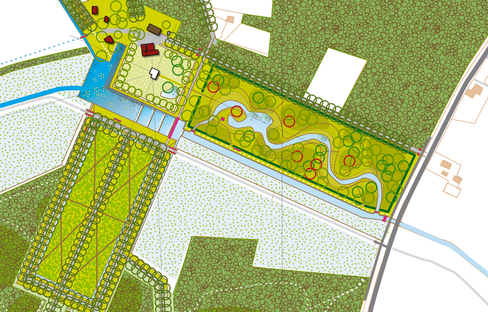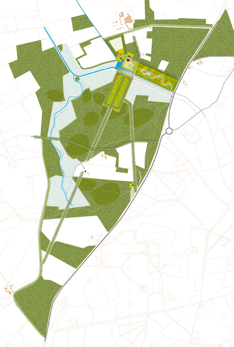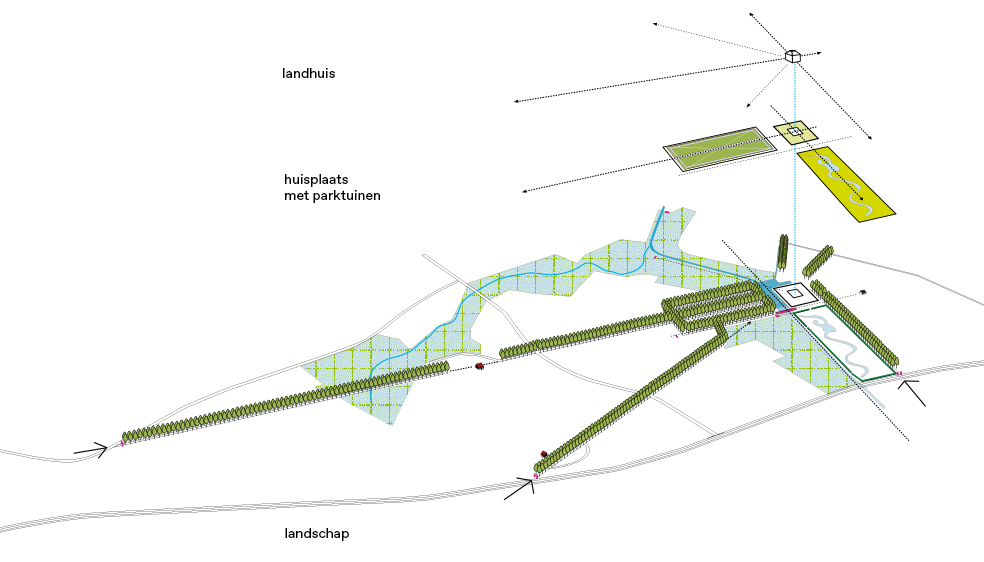 Visie op herdefinitie van het hart van het landgoed, in samenhang met herstel van de structurende elementen en lijnen van het landgoed.