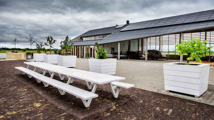 ‘De Natuurderij is een biologisch dynamisch rundveebedrijf én een centrum voor beheer. Het bedrijf werkt met 80 melkkoeien en jongvee in een gesloten bedrijfsvoering, waarbij tevens het beheer voor de IJsselnatuur én de waterveiligheid wordt uitgevoerd. KeizersRande is daarnaast geboren uit de wens om de schoonheid van het landgoed Rande te koppelen aan de weidsheid en natuur van de Keizers- en Stobbenwaarden. In het project Ruimte voor de Rivier is het landschapsontwerp van Van Paridon x de Groot landschapsarchitecten intergraal onderdeel geworden van de nieuwe uiterwaarden met de nieuwe geulen. Het resultaat is een prachtige boerderij op een nieuwe terp naar ontwerp van Daad architecten, waarin de gehoorde koeien in een strobedstal alle ruimte krijgen.’
