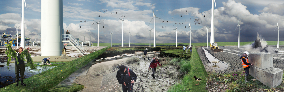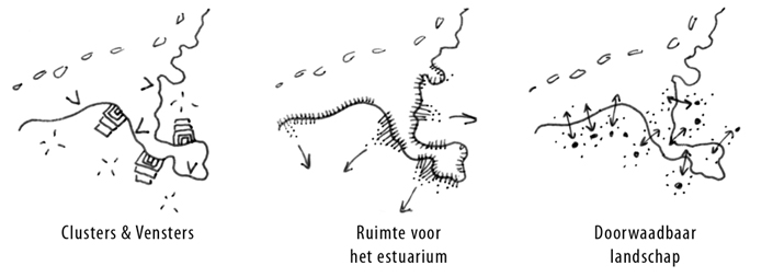Met ‘ruimte voor het estuarium’ wordt de harde grens tussen land en water, tussen binnen-en buitendijks wordt waar mogelijk geslecht. Dit biedt kansen voor versterking van het Wadden-ecosysteem, maar ook voor nieuwe vormen van landbouw, recreatie en slibwinning. Een krachtige natuur biedt weer kansen voor de landschappelijke inbedding van het energie-chemie-industriecluster. De regio richt zich hiermee (opnieuw) naar het water als nieuwe levensbron: van problematische achterkant naar kansrijke voorkant.