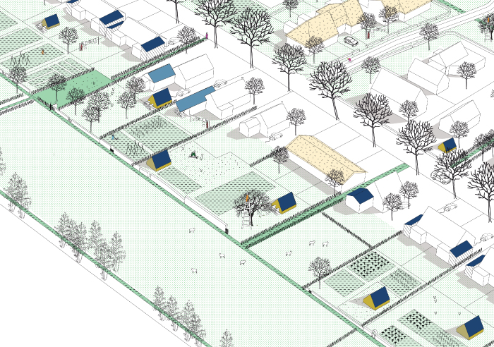 ‘Onderdendam Duurzaam en Veilig’. Voor het dorp zijn zeven strategiën ontwikkeld, die ook in andere dorpen toegepast kunnen worden. Inzoom op verschillende dorpsstrategieen (i.s.m. LINT en DAAD Architecten)